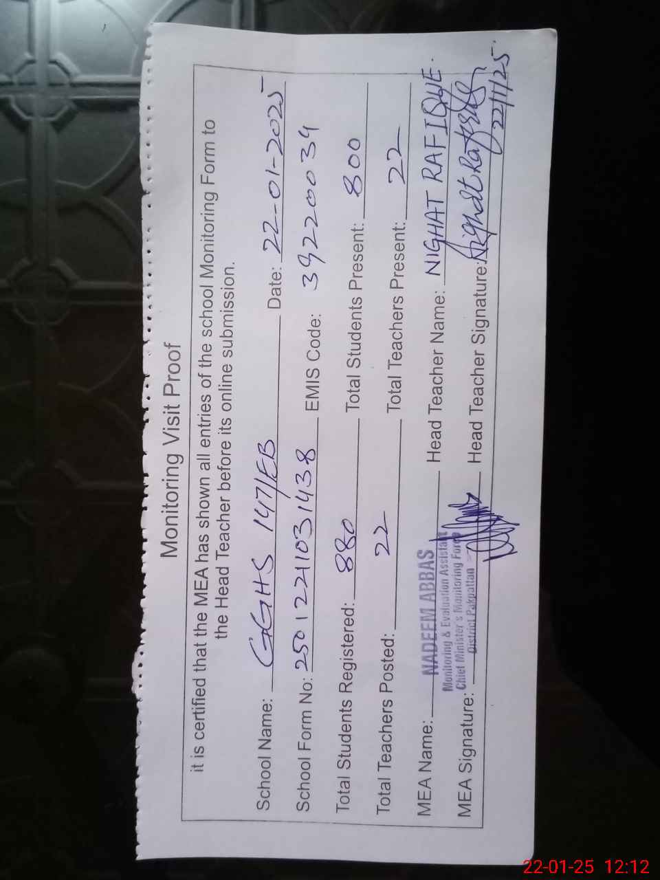 | EMIS Code: 39220034 | Name of School: GGHS 147 EB | |||