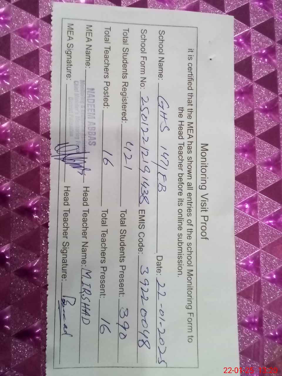| EMIS Code: 39220048 | Name of School: GHS 147 EB | |||