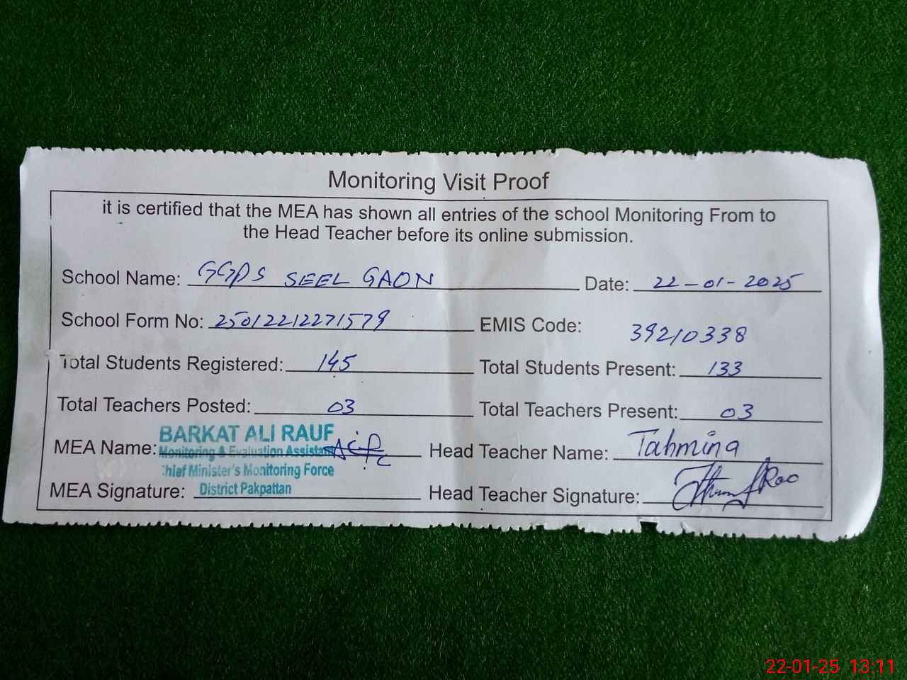 | EMIS Code: 39210338 | Name of School: GGPS SEEL GAON | |||