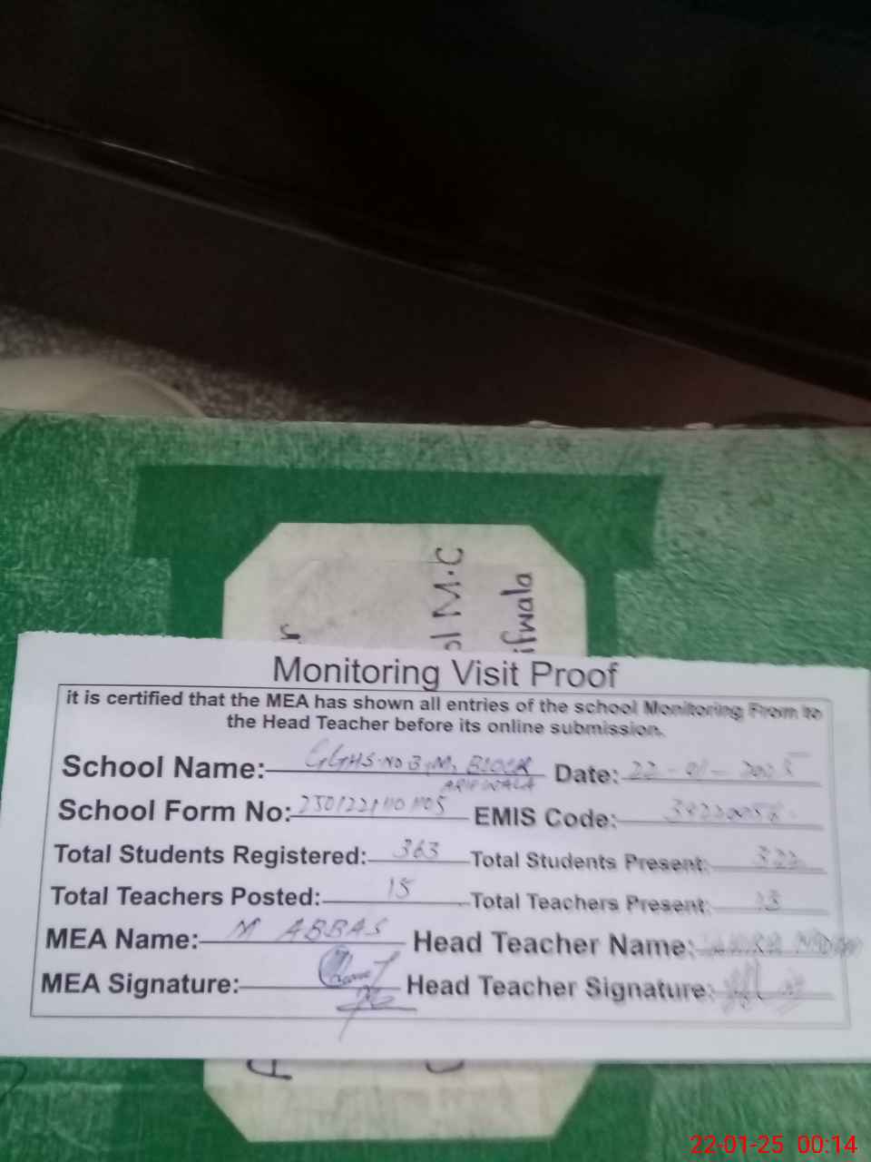 | EMIS Code: 39220056 | Name of School: GGHS MC NO.3 M BLOCK ARIFWALA | |||