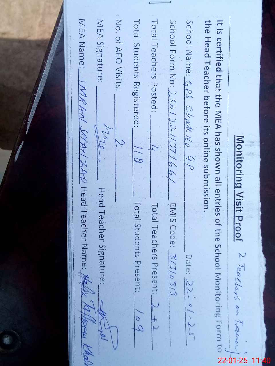 | EMIS Code: 31310313 | Name of School: GPS CHAK NO. 9/P | |||