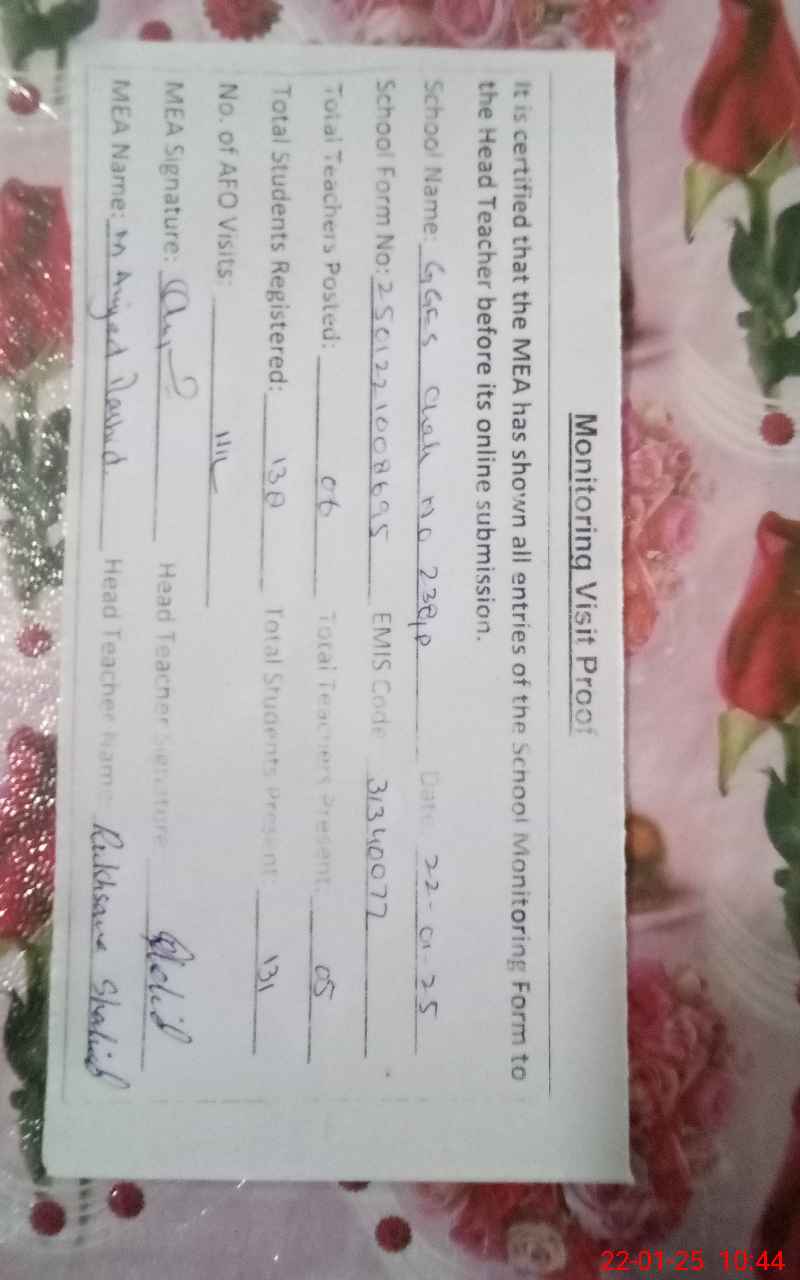 | EMIS Code: 31340077 | Name of School: GGES CHAK 238/P | |||