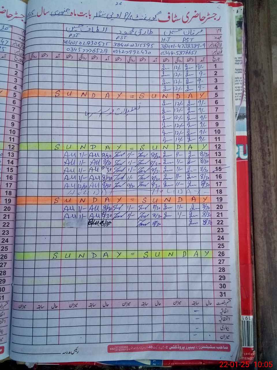 | CNIC | Full Name | Designation | R/C | Absence During Last Calender Month |