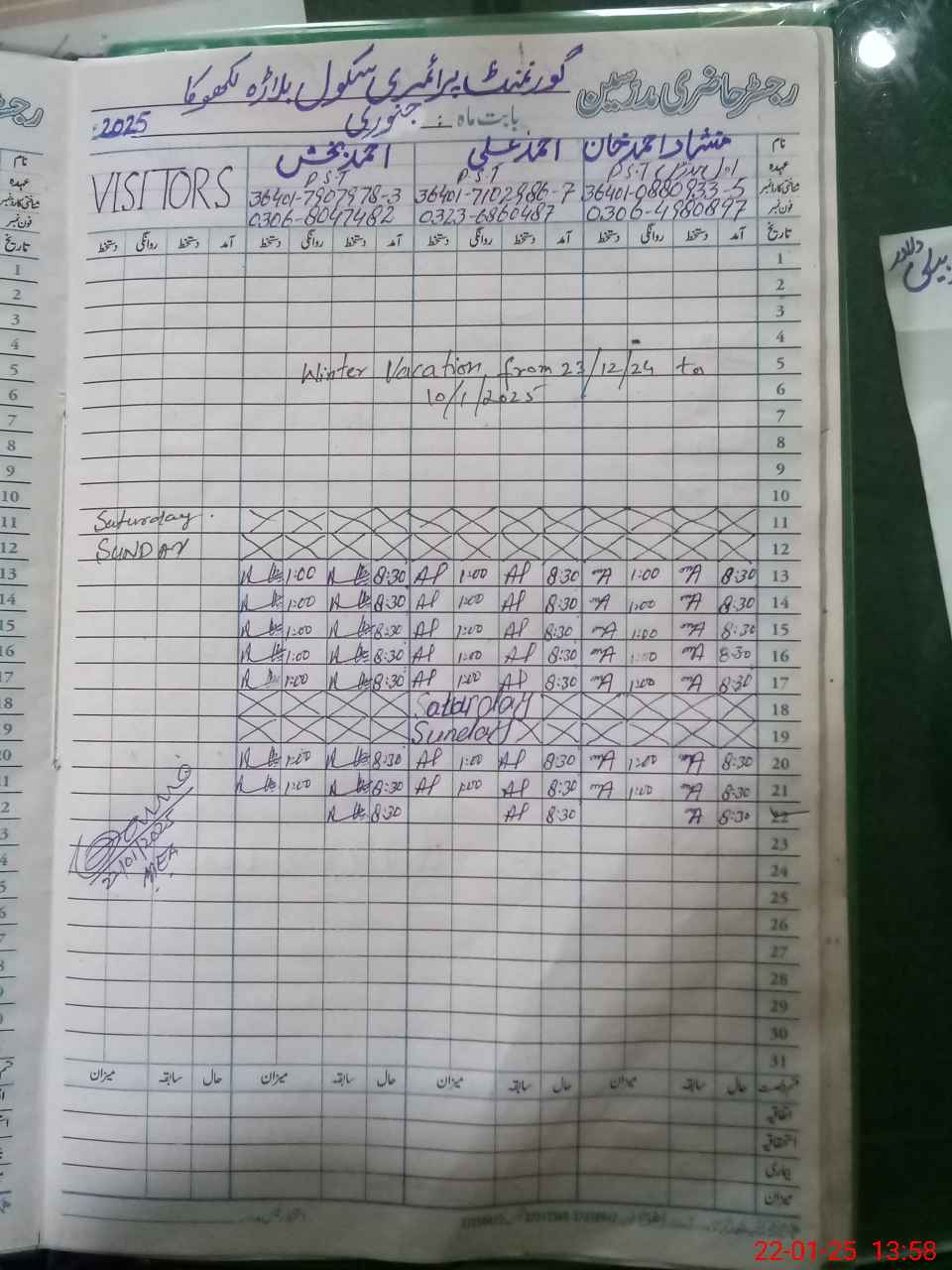 | Name: MA**** AH**** Designation: (School Headmaster's/Headmistress's) PST Phone/Cell Number: 03**** |