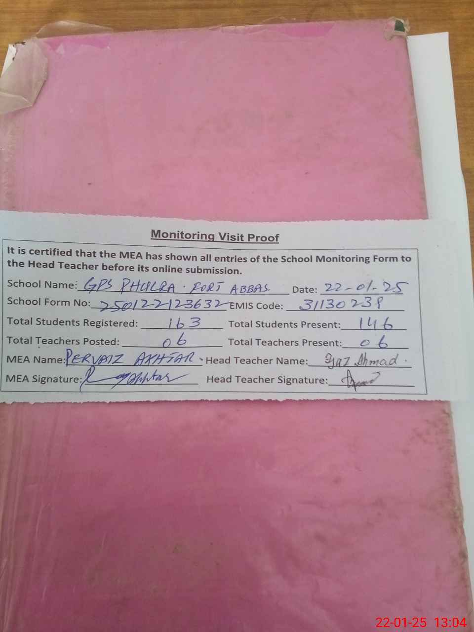 | EMIS Code: 31130239 | Name of School: GPS PHULRA FORT ABBAS | |||