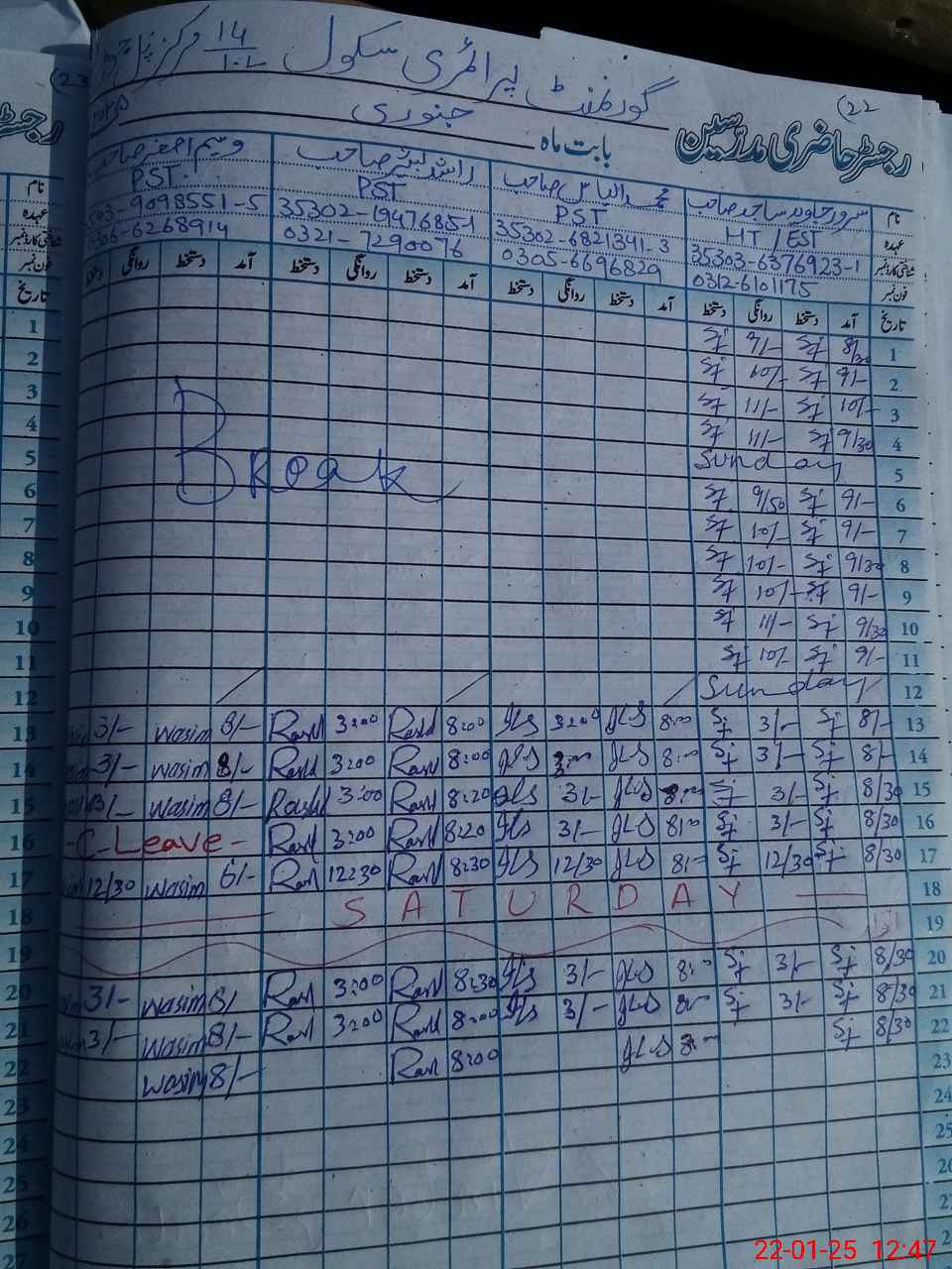 | Name: SA**** Ja**** SA**** Designation: (School Headmaster's/Headmistress's) EST Phone/Cell Number: 03**** |