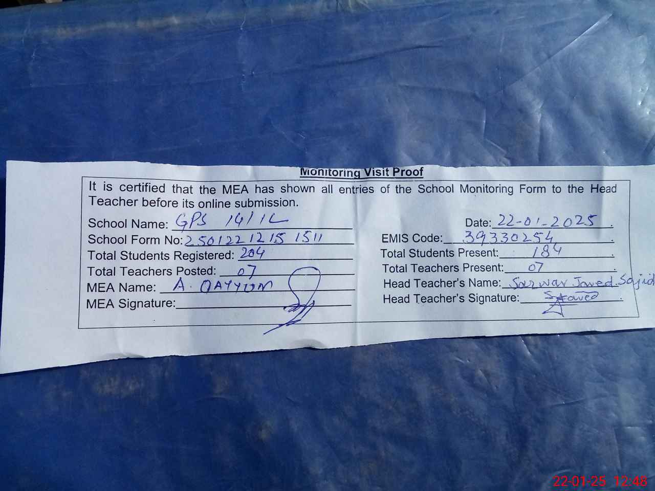 | EMIS Code: 39330254 | Name of School: GPS CHAK NO 14/1L | |||