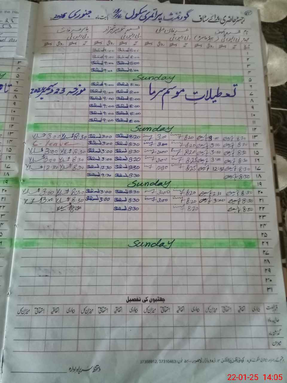 | CNIC | Full Name | Designation | R/C | Absence During Last Calender Month |