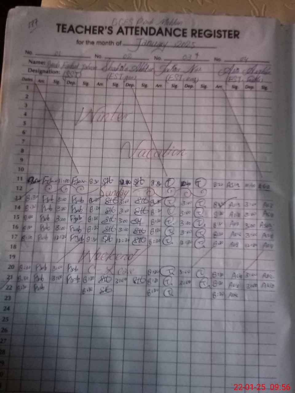 | Name: SY**** FA**** JA**** Designation: (School Headmaster's/Headmistress's) SST GENERAL Phone/Cell Number: 03**** |