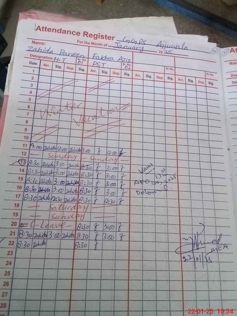 | Name: Za**** Pe**** Designation: (School Headmaster's/Headmistress's) PST Phone/Cell Number: 03**** |