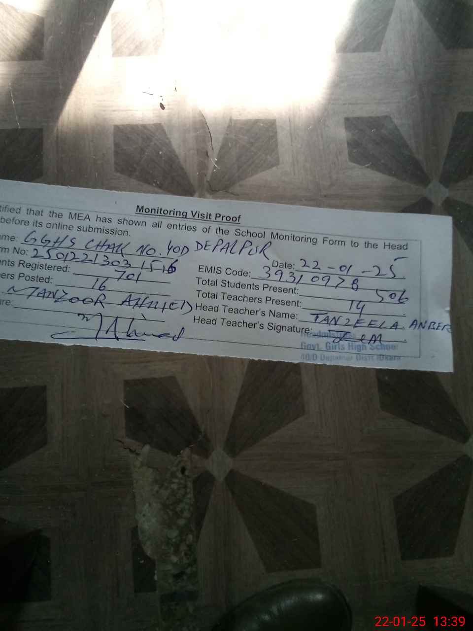 | EMIS Code: 39310978 | Name of School: GGHS CHAK NO. 40/D DEPALPUR | |||