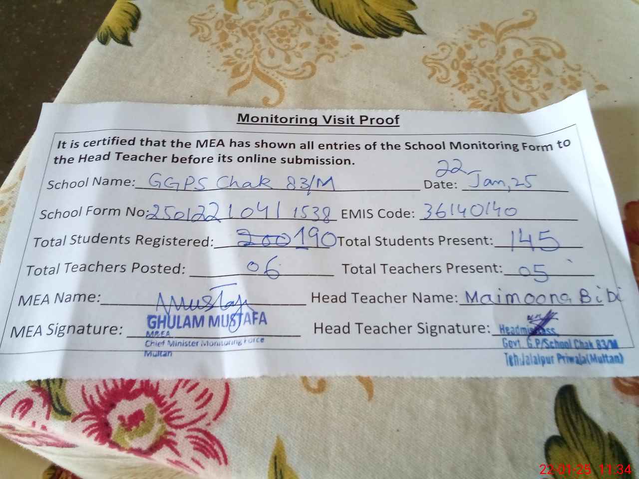 | EMIS Code: 36140140 | Name of School: GGPS CHAK NO. 83/M | |||