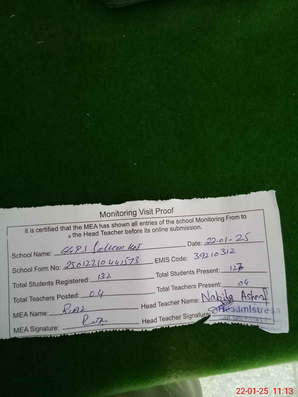 | EMIS Code: 39210312 | Name of School: GGPS SALEEM KOT | |||
