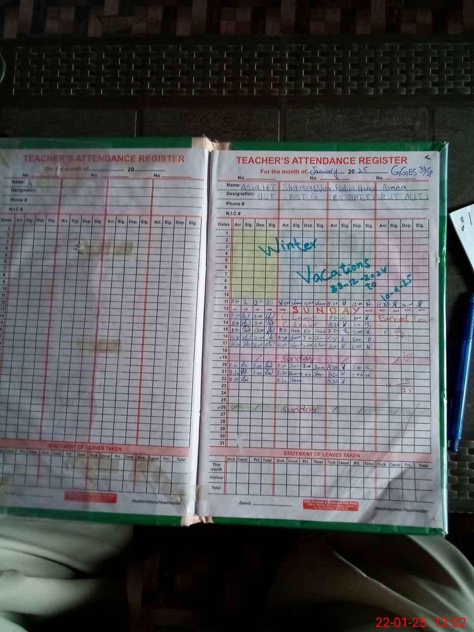 | Name: AA**** JA**** MU**** Designation: (School Headmaster's/Headmistress's) SST (GENERAL) Phone/Cell Number: 03**** |