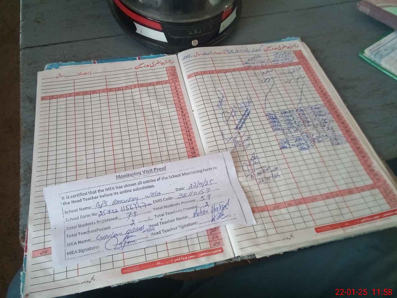 | EMIS Code: 38110157 | Name of School: GPS BAKHRRAY WALA | |||