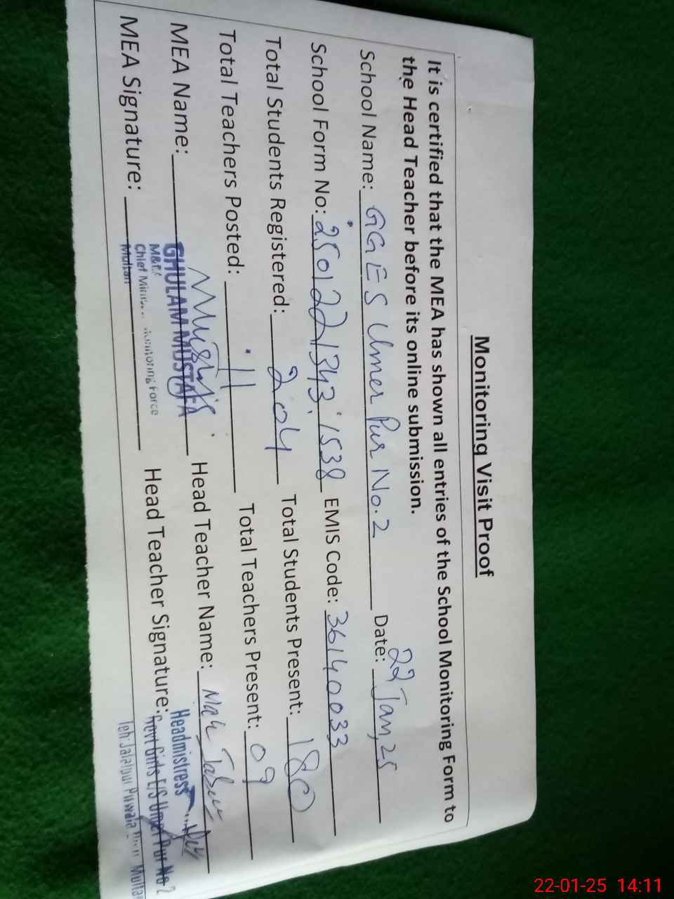 | EMIS Code: 36140033 | Name of School: GGES UMER PUR NO.2 | |||