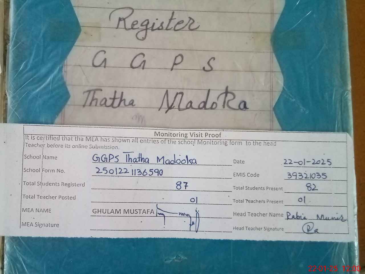| Attendance Register | Head Teacher | MEA with School | Visit Proof |