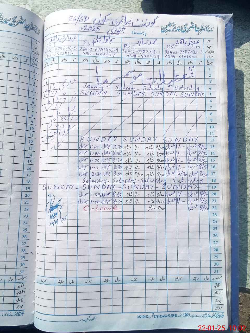 | CNIC | Full Name | Designation | R/C | Absence During Last Calender Month |