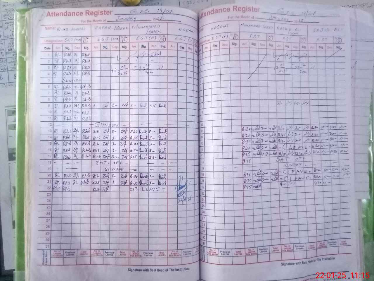| Name: RI**** AH**** Designation: (School Headmaster's/Headmistress's) SST (GENERAL) Phone/Cell Number: 03**** |