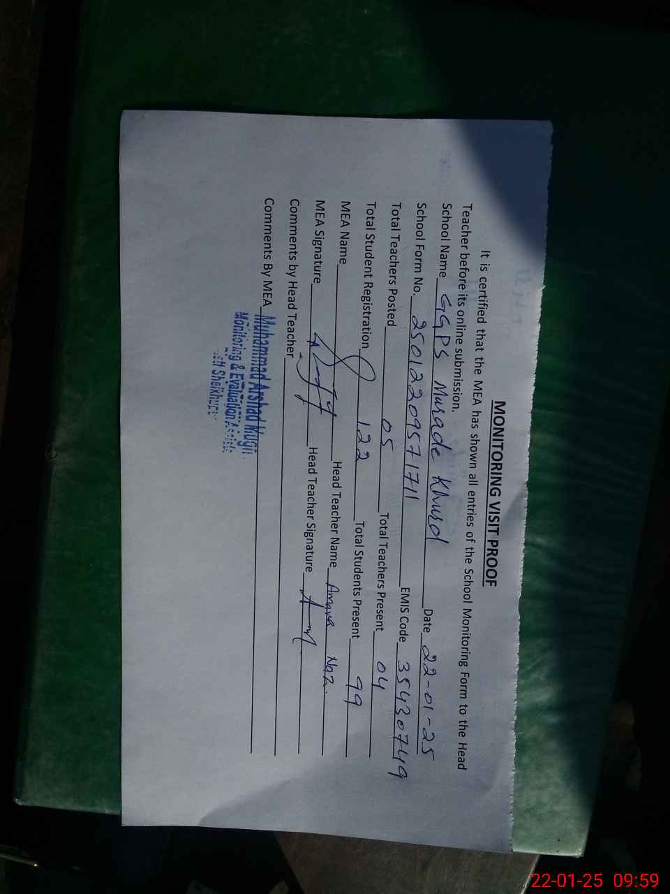 | EMIS Code: 35430749 | Name of School: GGPS MURADAY KHURD | |||