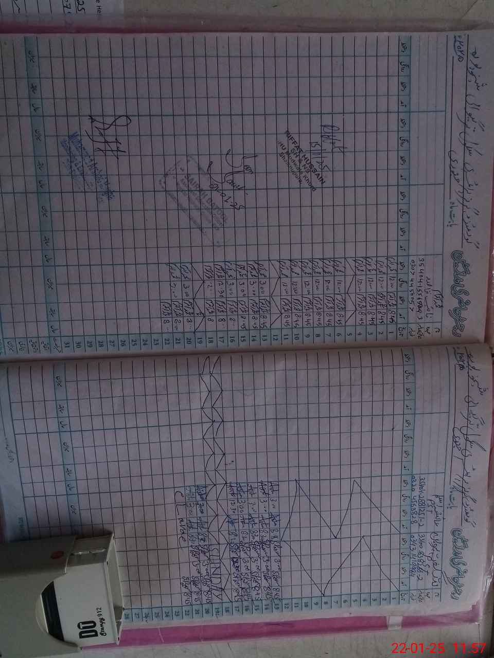 | CNIC | Full Name | Designation | R/C | Absence during last cal. month |
