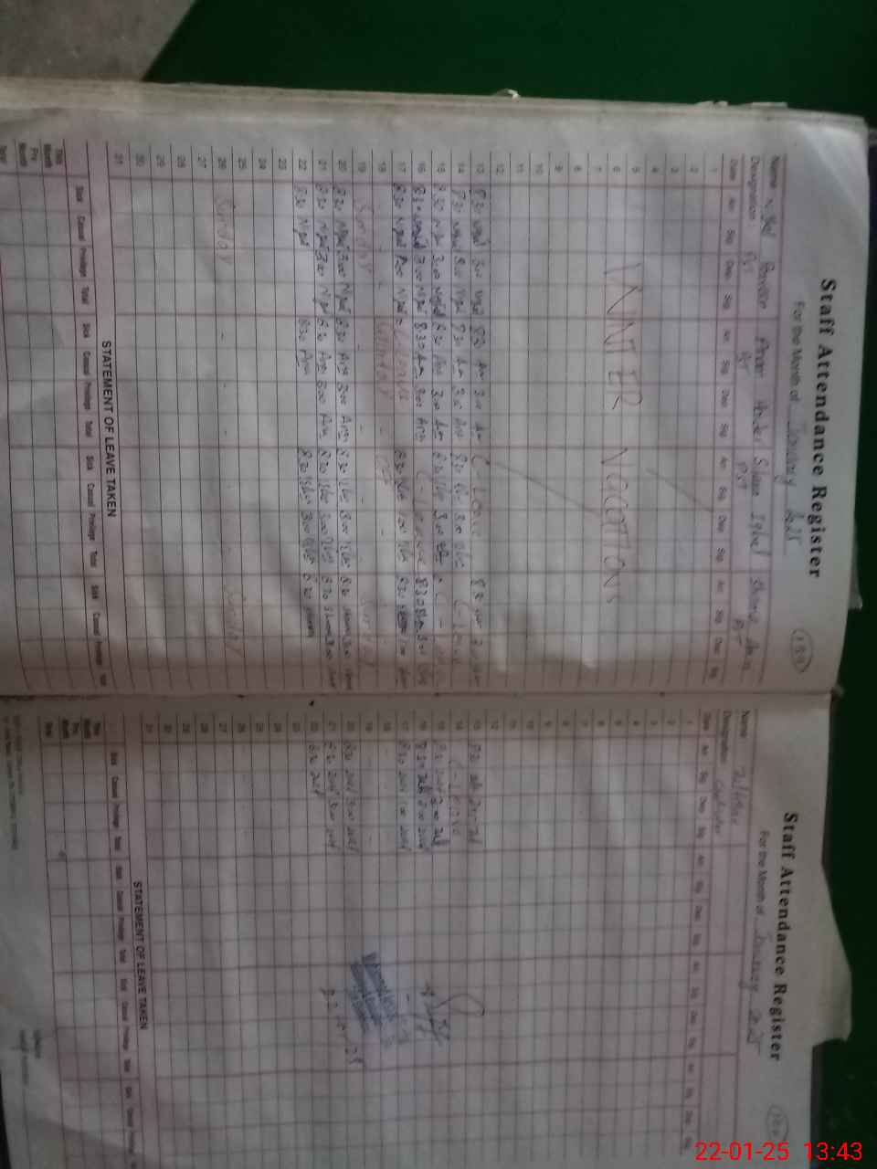 | CNIC | Full Name | Designation | R/C | Absence During Last Calender Month |
