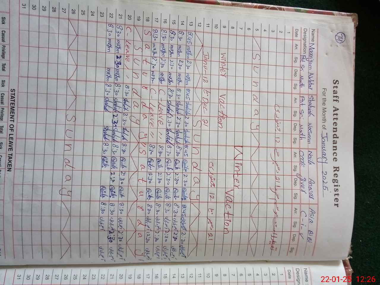 | CNIC | Full Name | Designation | R/C | Absence During Last Calender Month |