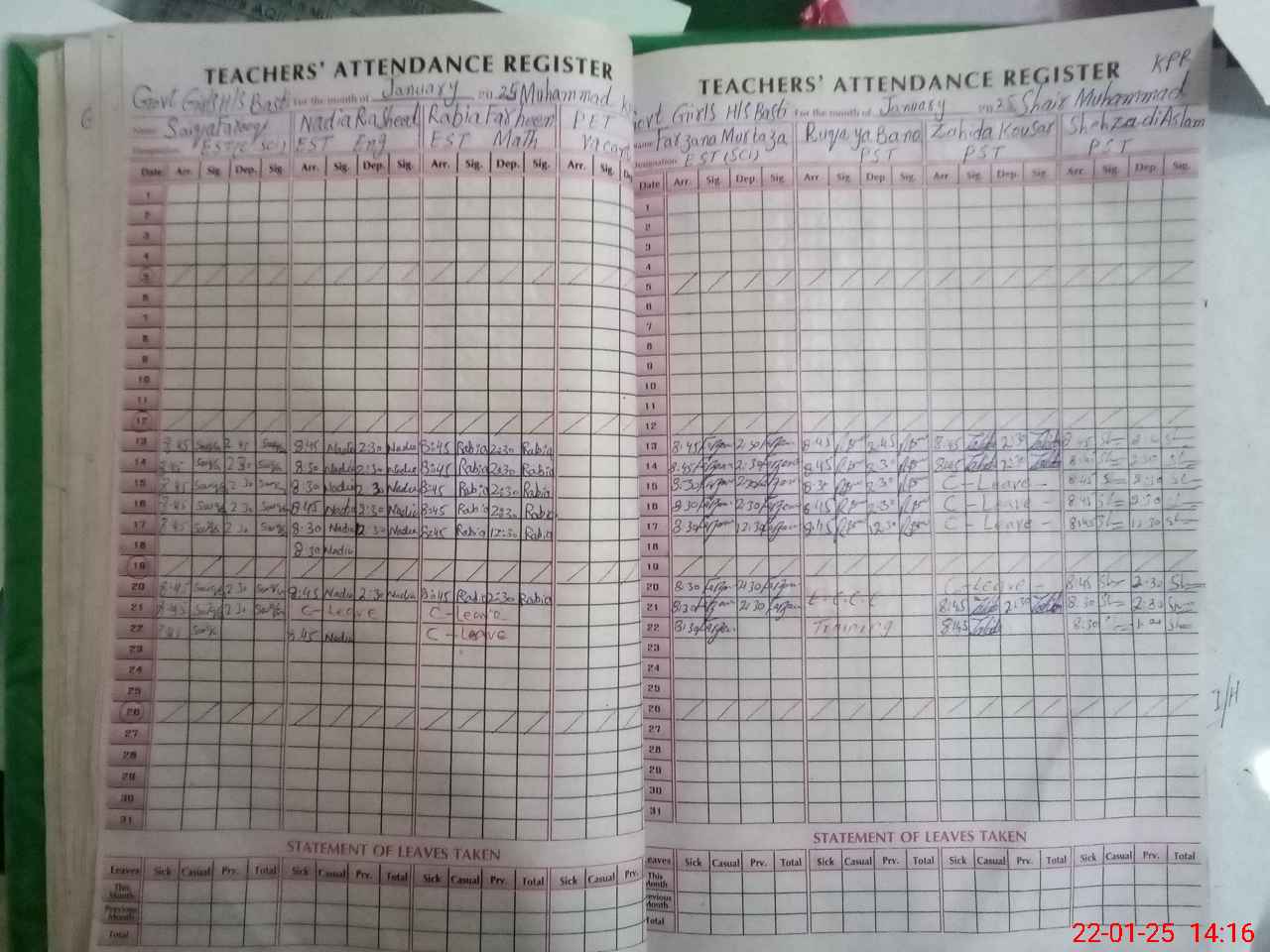 | CNIC | Full Name | Designation | R/C | Absence During Last Calender Month |