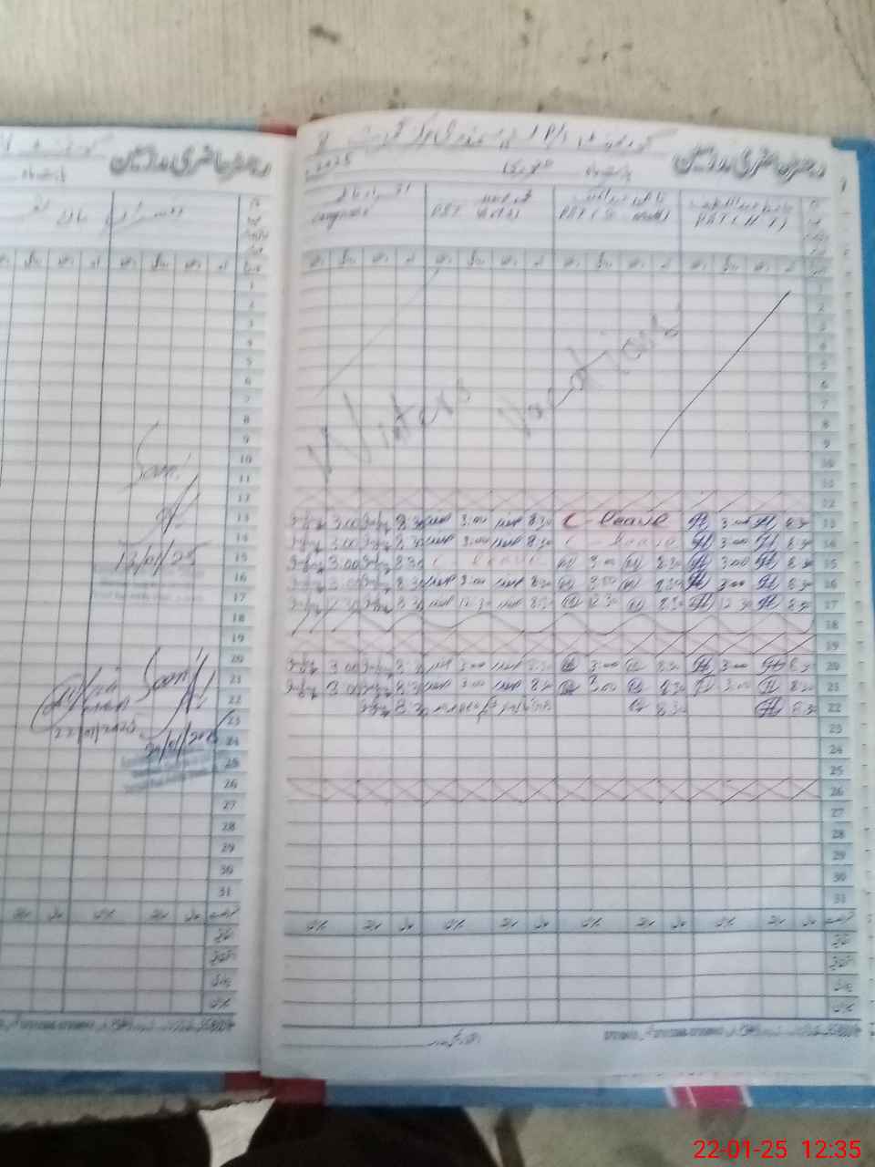 | CNIC | Full Name | Designation | R/C | Absence during last cal. month |