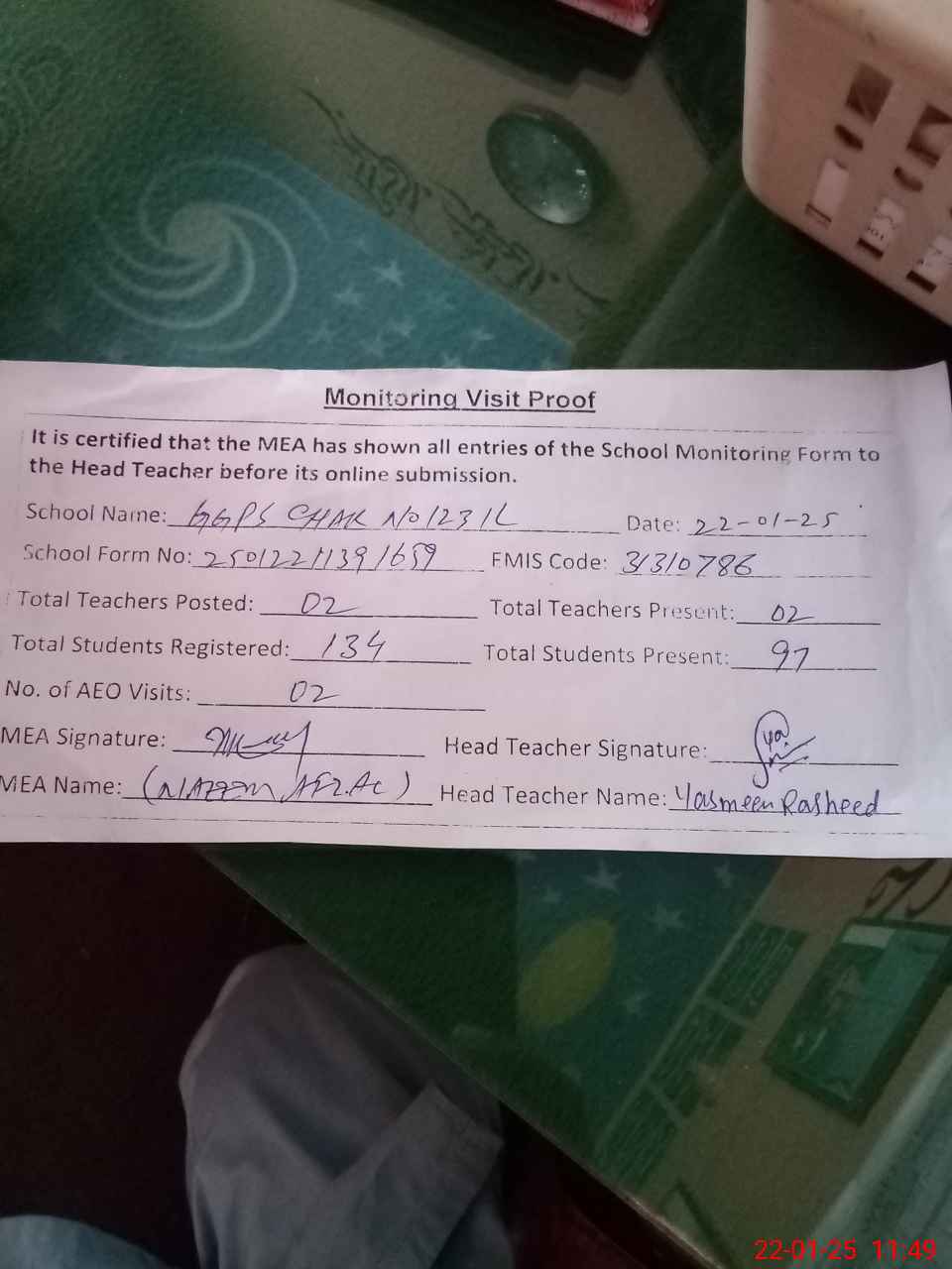 | EMIS Code: 31310786 | Name of School: GGPS CHAK NO. 123/1-L | |||