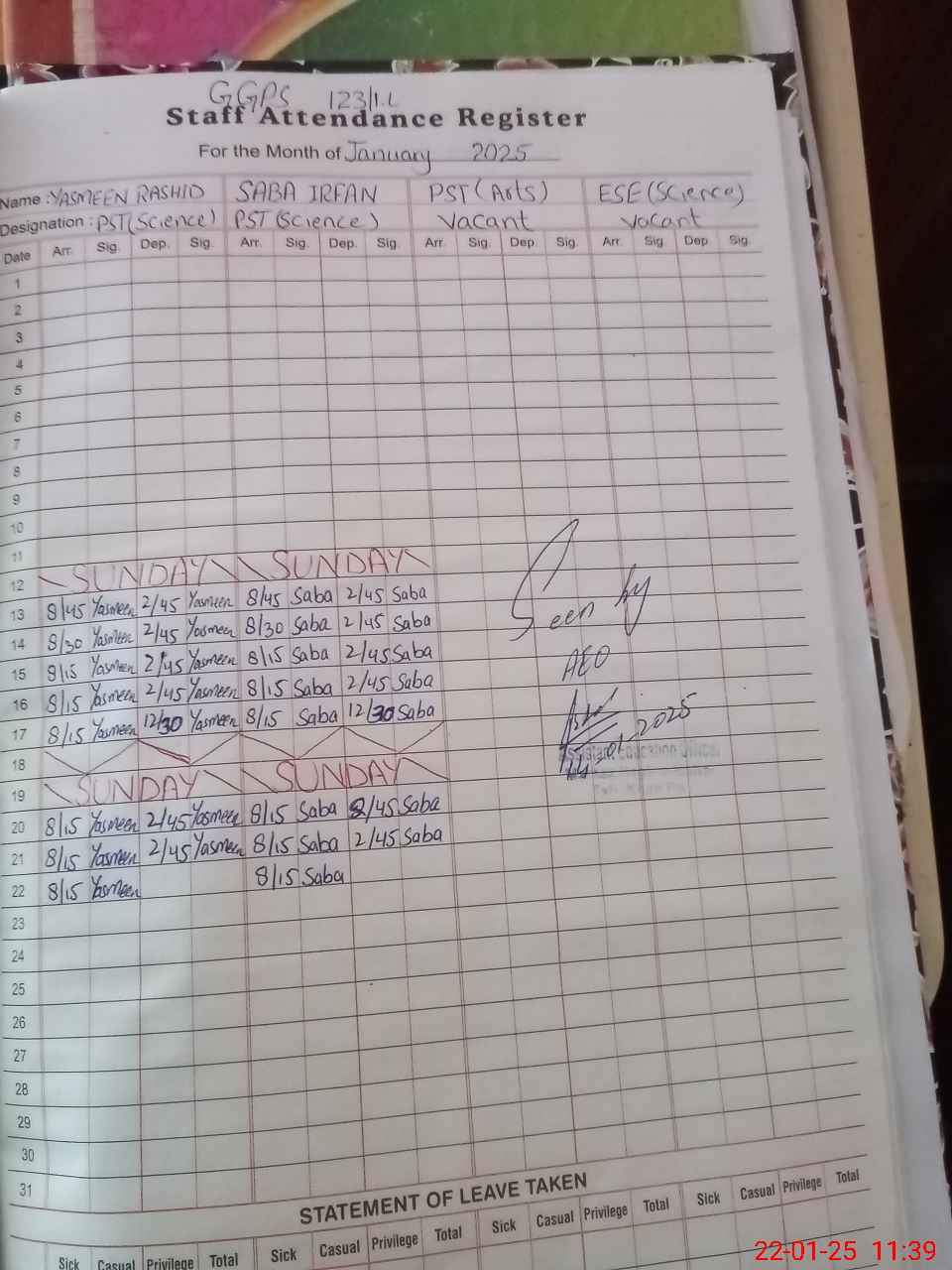 | CNIC | Full Name | Designation | R/C | Absence during last cal. month |