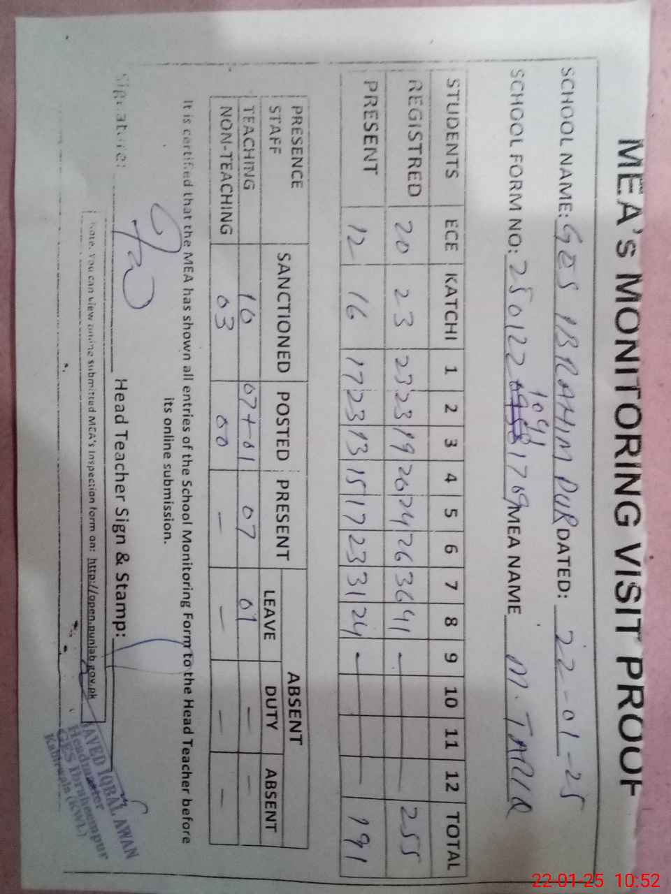 | Certified that this School was Inspected by the Undersigned MEA/DMO Today and the Information Stated Above is as Per Record. | |||||