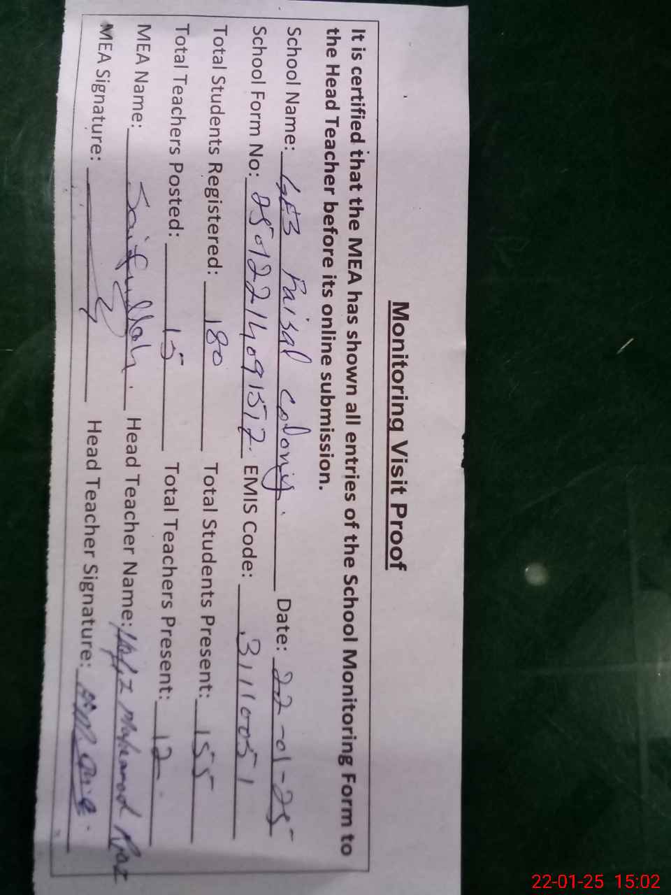 | EMIS Code: 31110051 | Name of School: GES FAISAL COLONY | |||