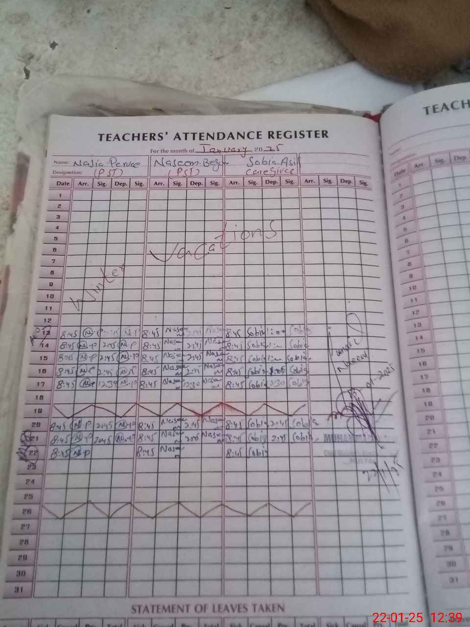 | Name: NA**** PE**** Designation: (School Headmaster's/Headmistress's) Pst Phone/Cell Number: 03**** |