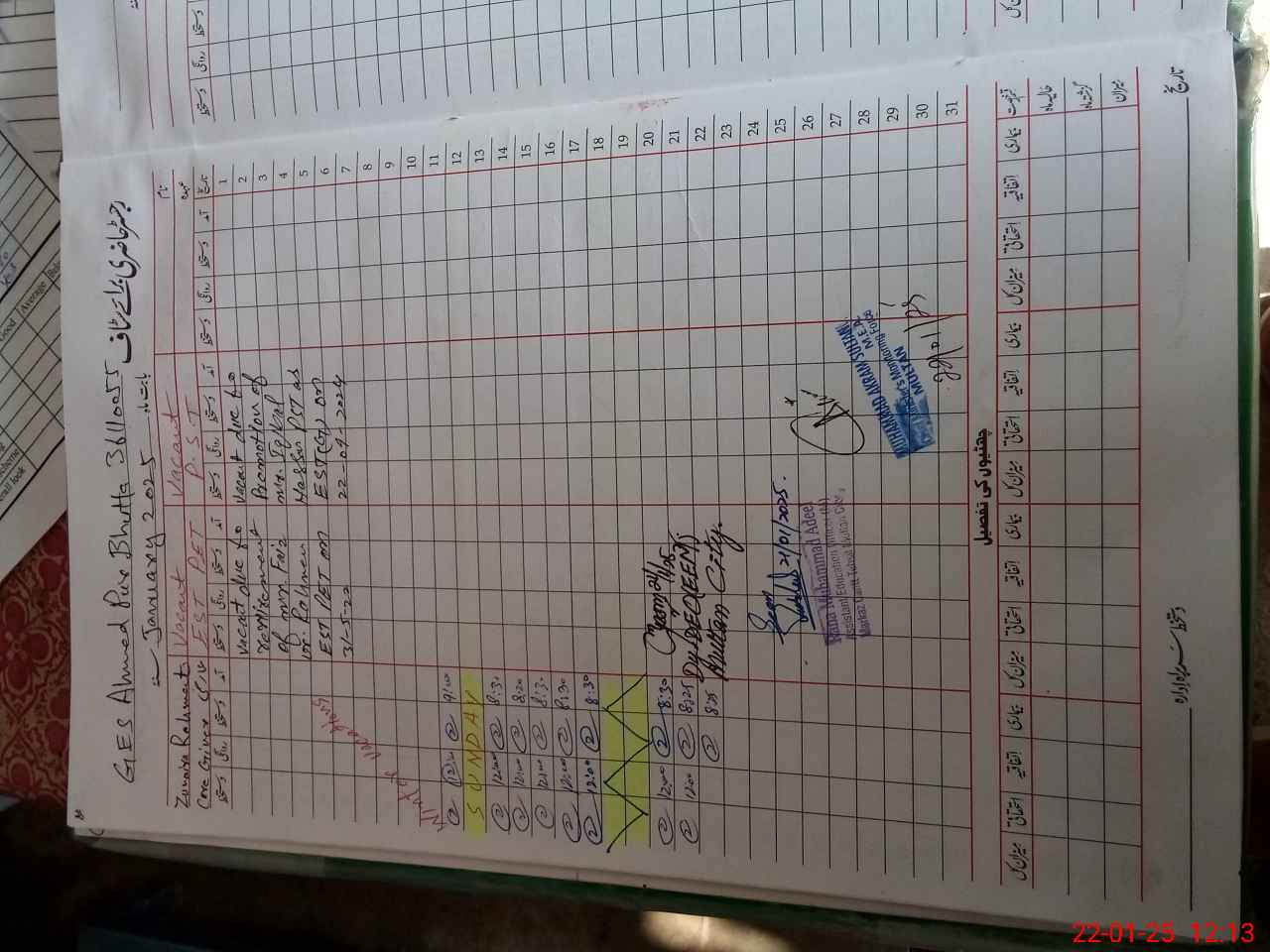 | CNIC | Full Name | Designation | R/C | Absence During Last Calender Month |