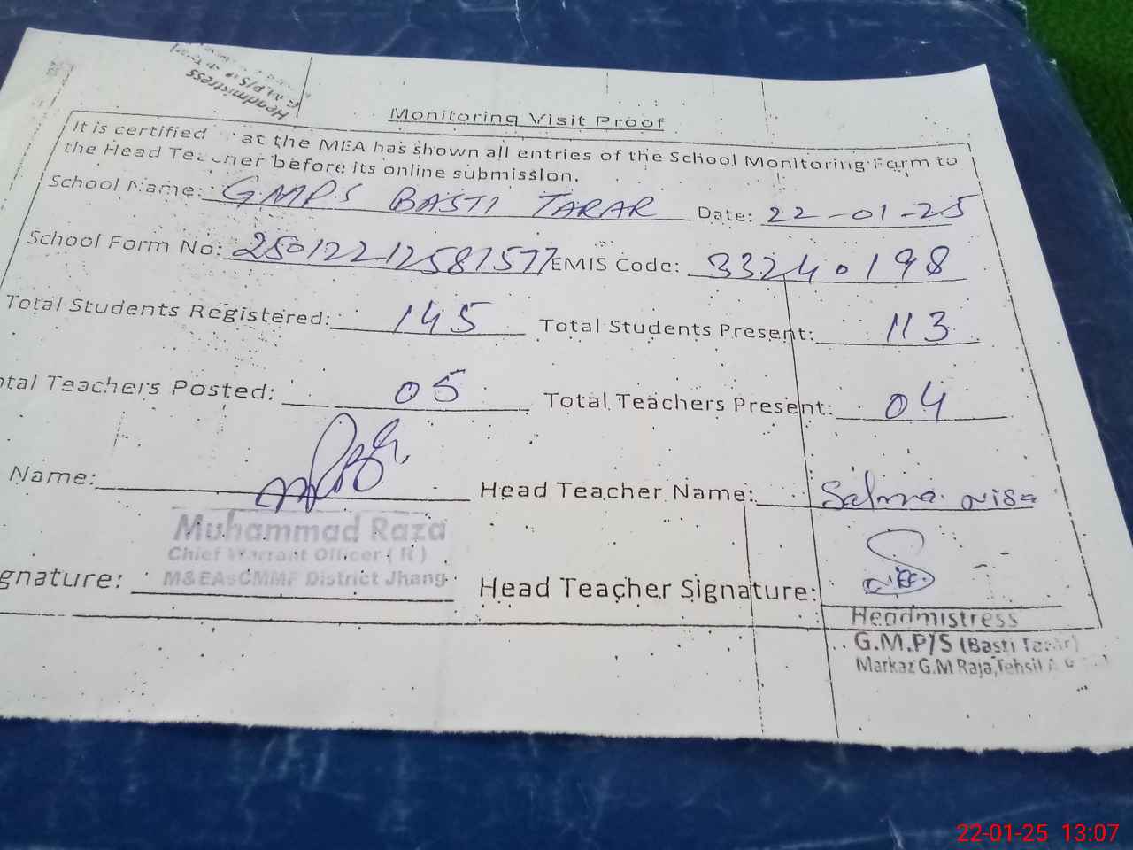 | EMIS Code: 33240198 | Name of School: GMPS BASTI TARAR | |||