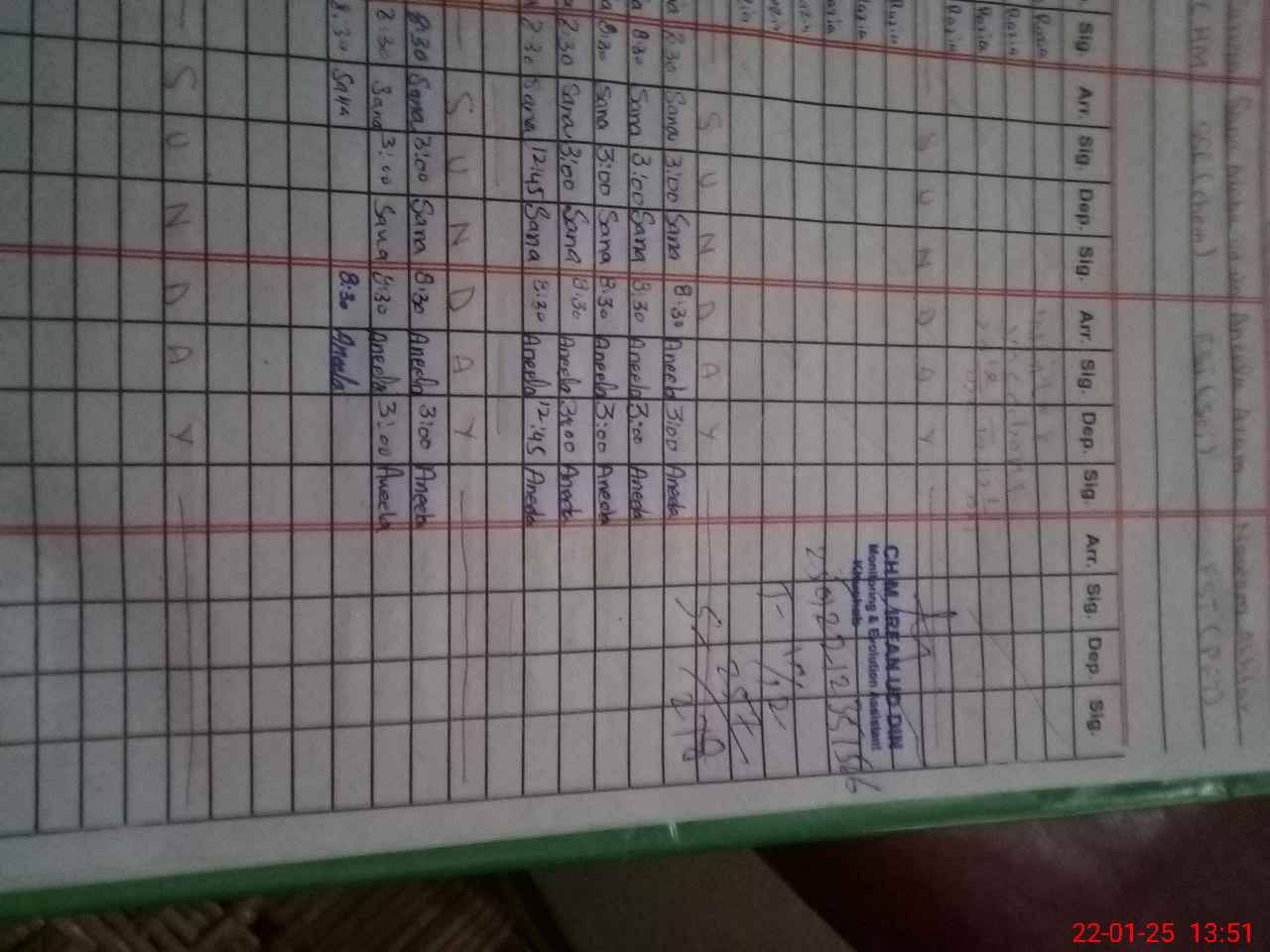 | CNIC | Full Name | Designation | R/C | Absence during last cal. month |
