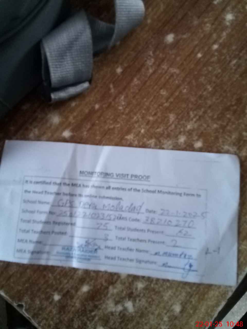 | Attendance Register | Head Teacher | MEA with School | Visit Proof |