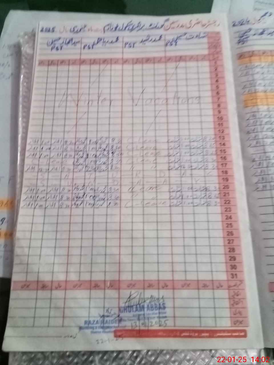 | CNIC | Full Name | Designation | R/C | Absence during last cal. month |