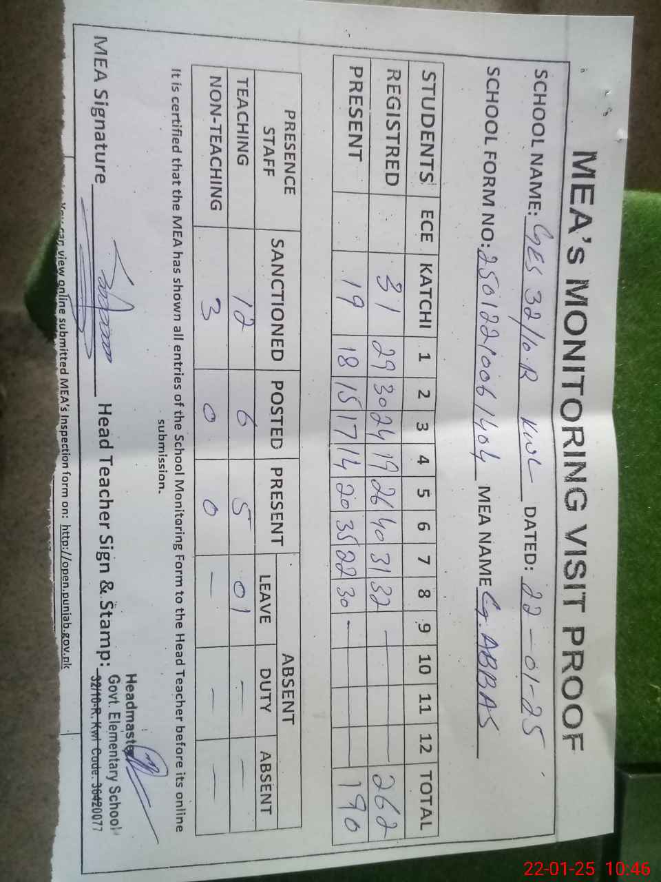 | Certified that this School was Inspected by the Undersigned MEA/DMO Today and the Information Stated Above is as Per Record. | |||||