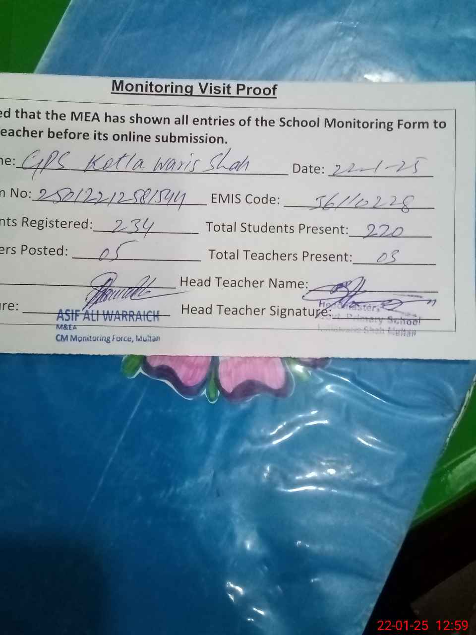 | EMIS Code: 36110228 | Name of School: GPS KOTLA WARIS SHAH | |||