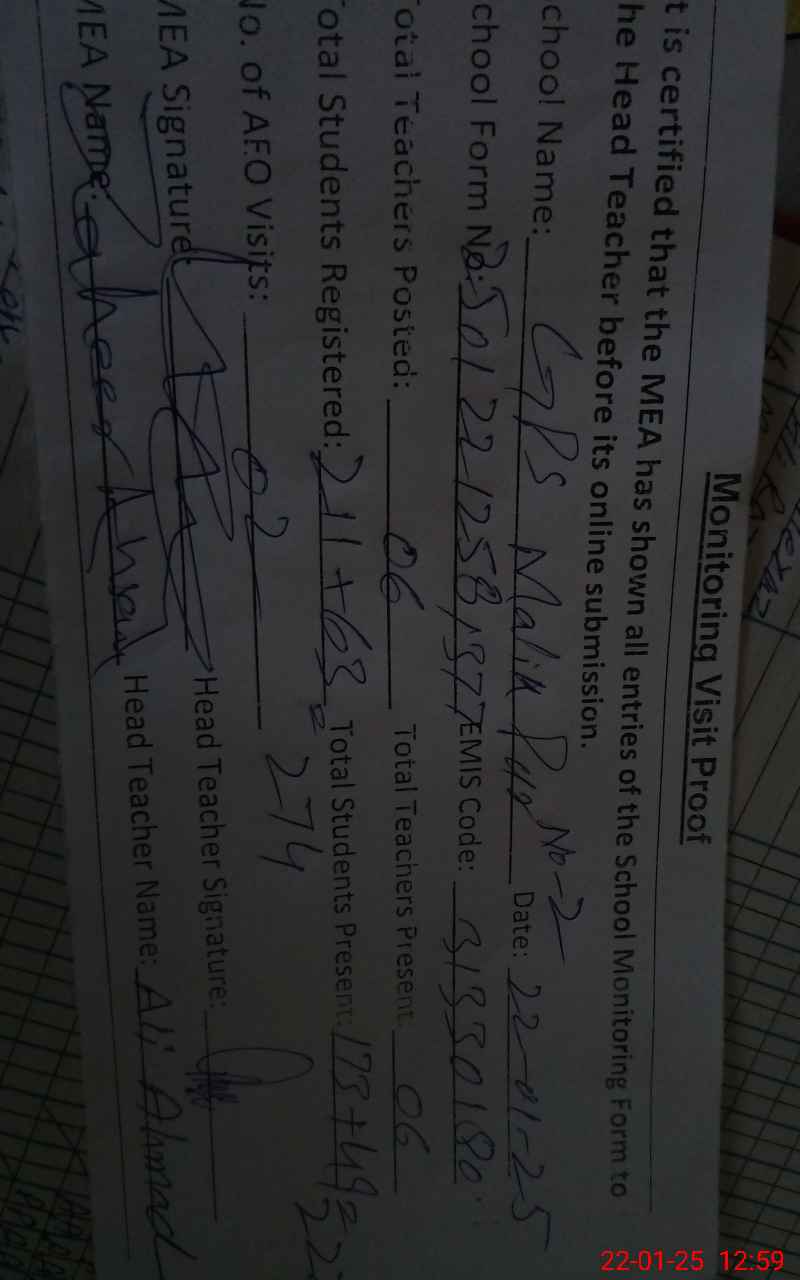 | EMIS Code: 31330180 | Name of School: GPS MALIK PUR NO. 2 | |||