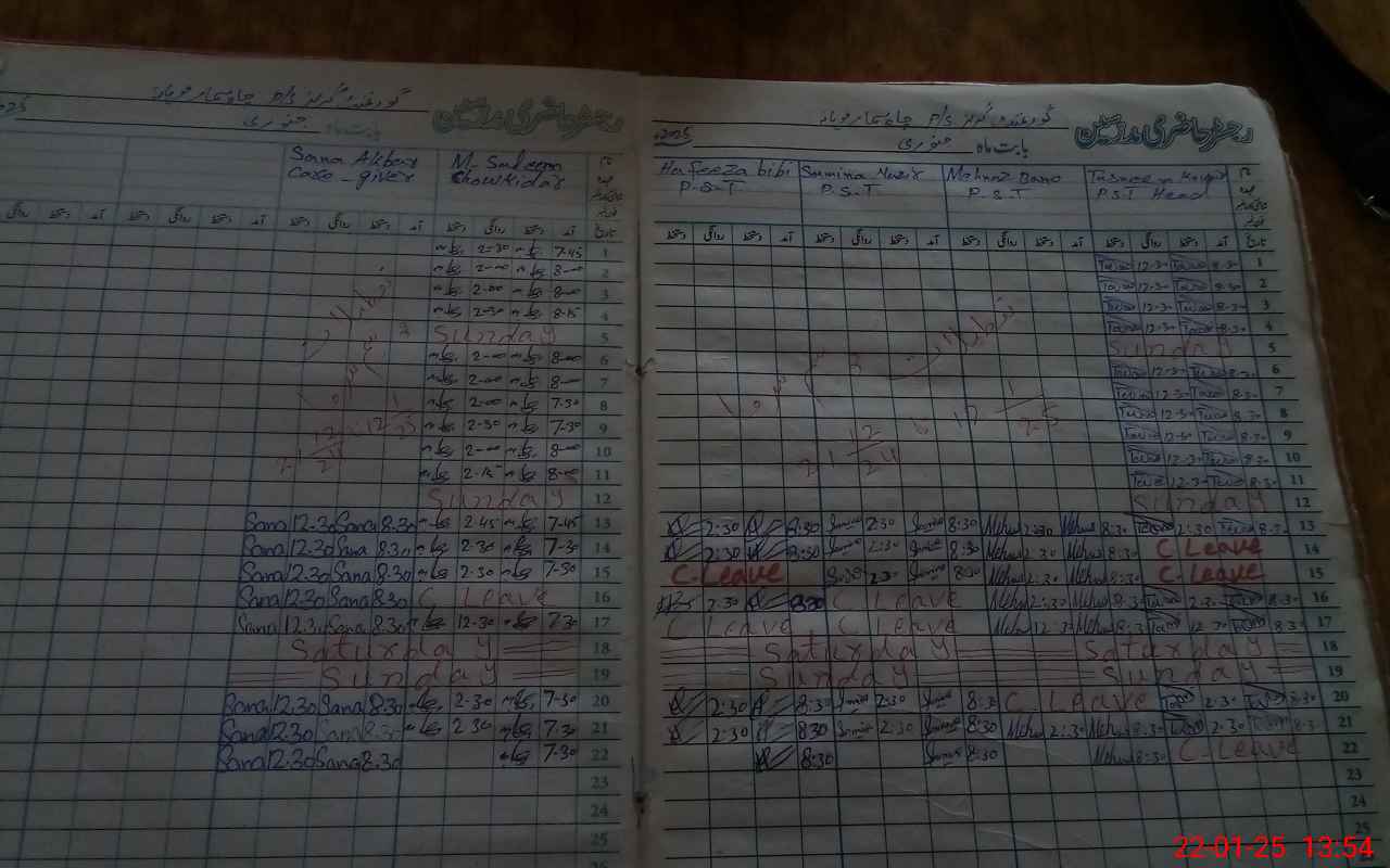 | CNIC | Full Name | Designation | R/C | Absence During Last Calender Month |
