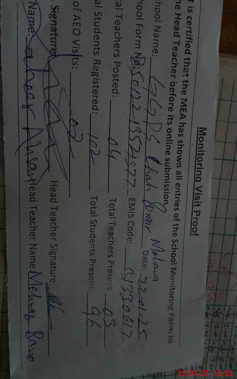 | Attendance Register | Head Teacher | MEA with School | Visit Proof |