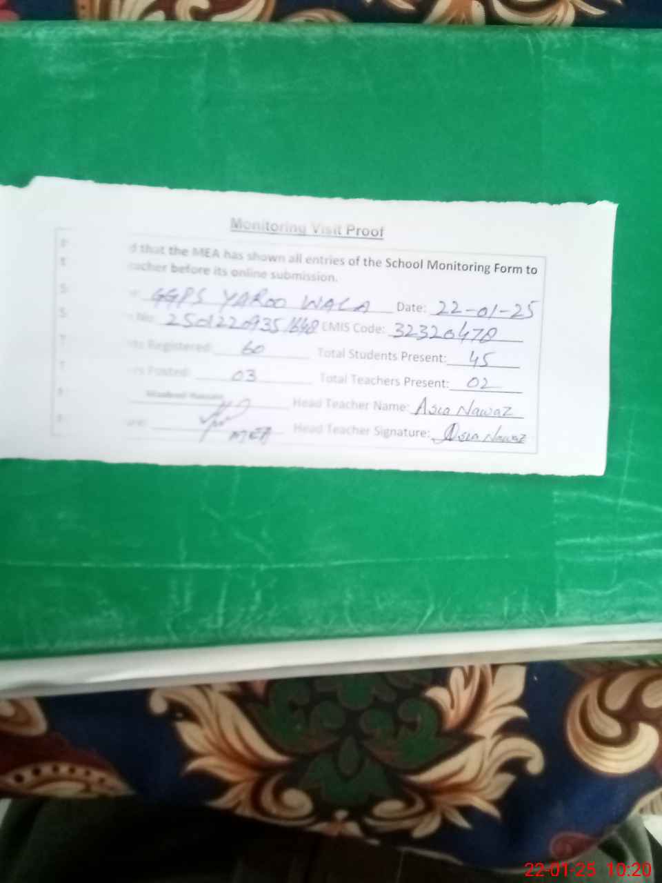 | EMIS Code: 32320478 | Name of School: GGPS YAROO WALA | |||