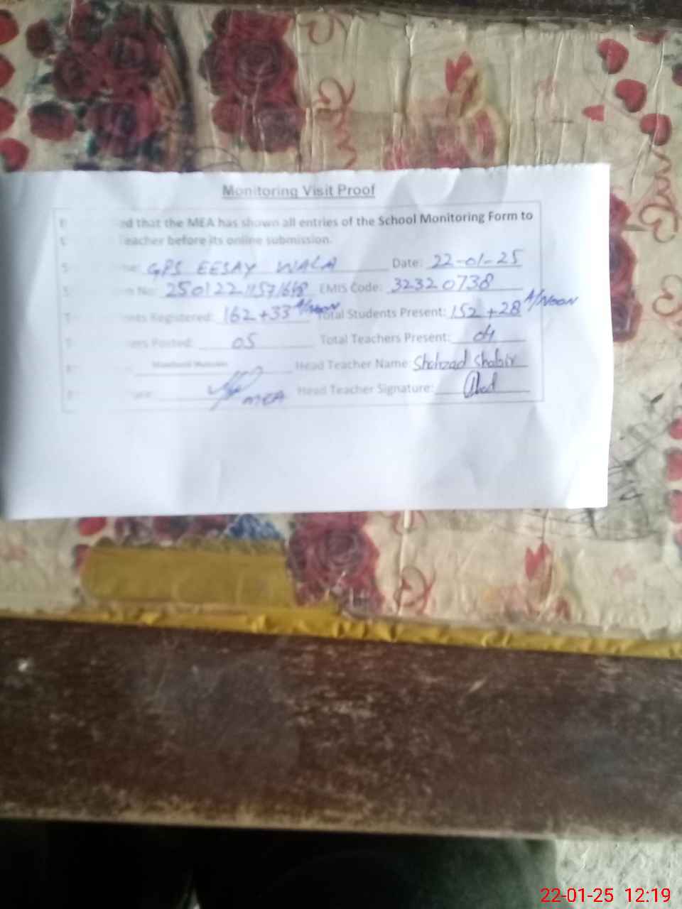 | EMIS Code: 32320738 | Name of School: GPS EESAY WALA | |||