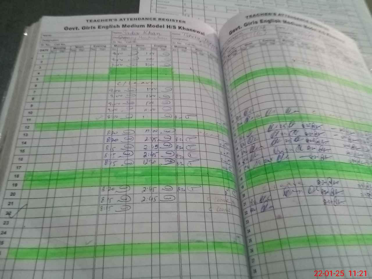 | CNIC | Full Name | Designation | R/C | Absence During Last Calender Month |