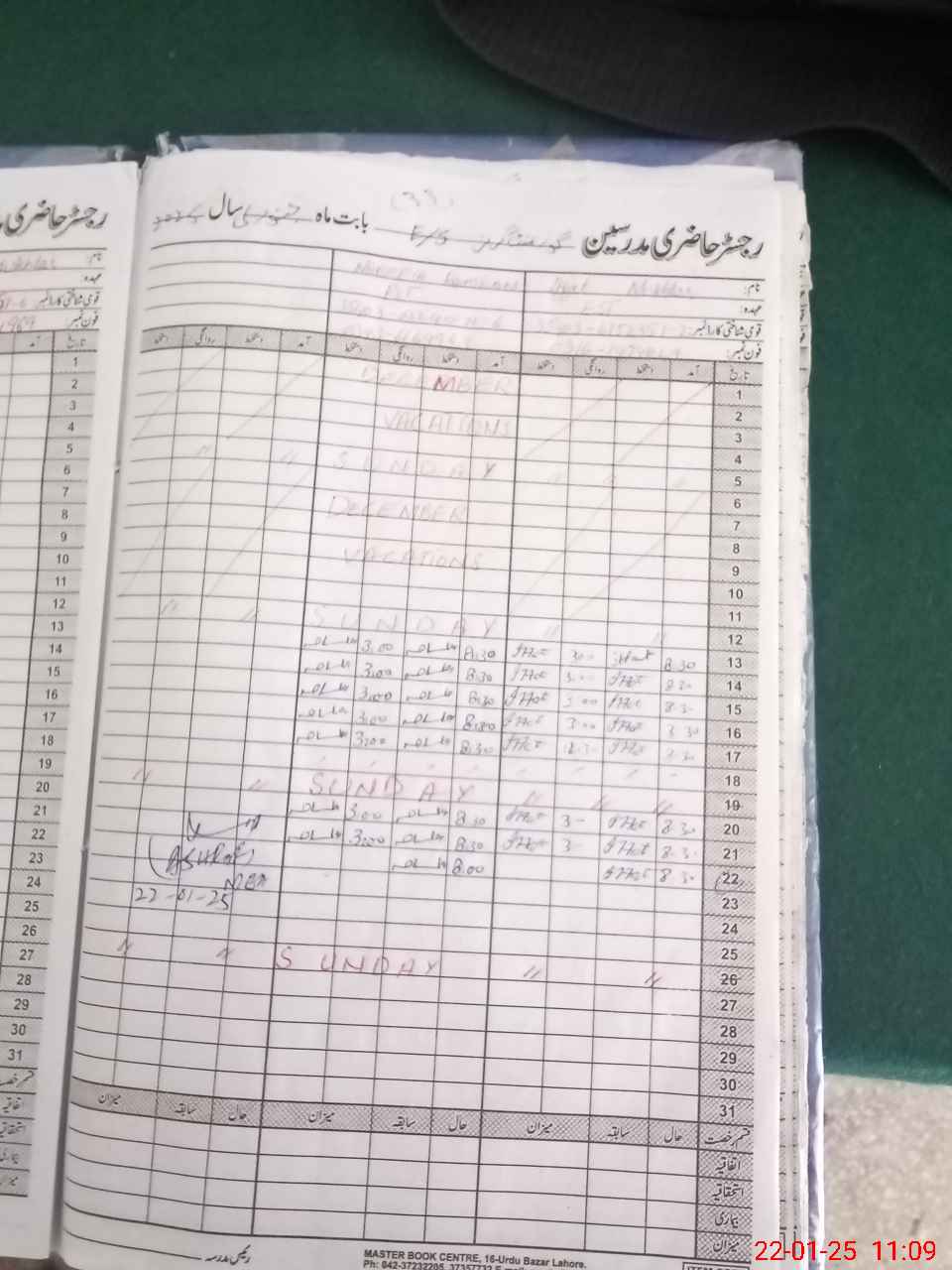| CNIC | Full Name | Designation | R/C | Absence During Last Calender Month |