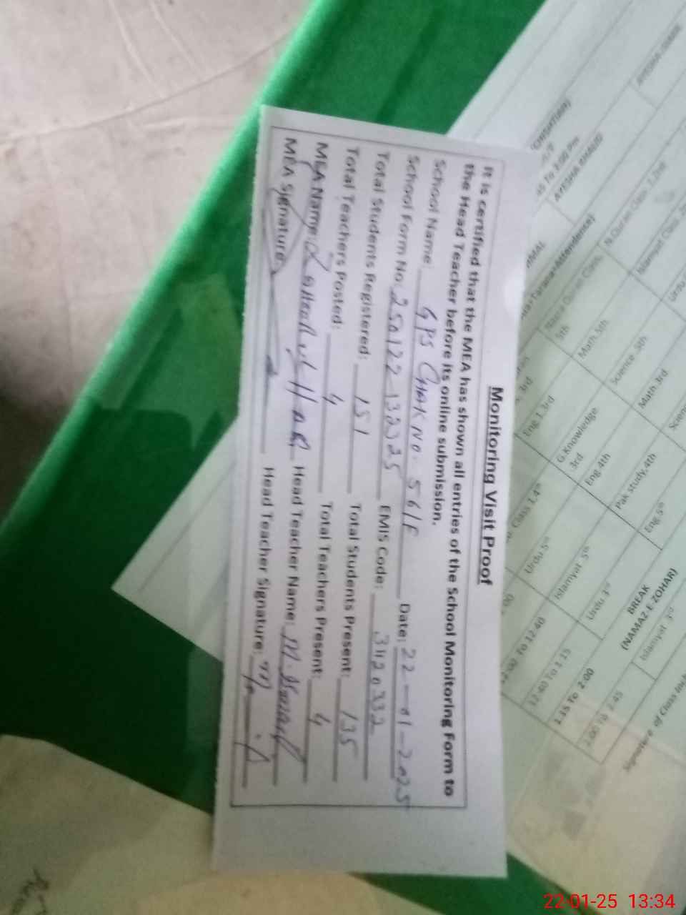 | Name: Qa**** Ma**** Designation: (School Headmaster's/Headmistress's) PST Phone/Cell Number: 03**** |