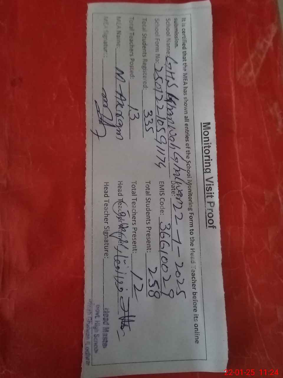 | EMIS Code: 36610029 | Name of School: GHS KHANWAH GHALWAN | |||